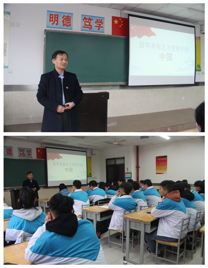 党委副书记贺天柱围绕“百年未有之大变局下的中国”的主题,从“百年未有之大变局、大变局中的机遇与挑战、大变局中的中国角色”三个方面讲授党课。首先,他通过分析国际力量对比之变、世界格局之变、科技革命之变、现代化发展模式之变阐述了以中国为代表的新兴市场国家和发展中国家群体性崛起,在世界上发挥重要作用和产生重大影响的力量构成了不同形态的世界格局;大量新产业、新业态、新模式正在改写人类发展历史,重塑全球经济结构,给人类的生产和生活方式带来翻天覆地的变化;科技发展带来新的未知和挑战,影响每个国家的前途命运,国际秩序和格局的演变进程;社会主义中国在探索现代化道路上取得了举世公认的成就。其次,他引领同学正确认识大变局孕育着中国引领时代、塑造时代的机遇和挑战;第三,他着重解读中国发展振兴是百年大变局的重大变化之一、是和平与稳定的力量、是大变局中的正能量;中国积极为维护世界和平稳定贡献中国智慧和中国方案,积极维护以联合国为核心的国际秩序,积极探索和践行中国特色热点问题解决之道;中国始终坚持走和平发展道路,永不称霸、永不扩张、永不谋求势力范围,中国是发展与繁荣的力量。