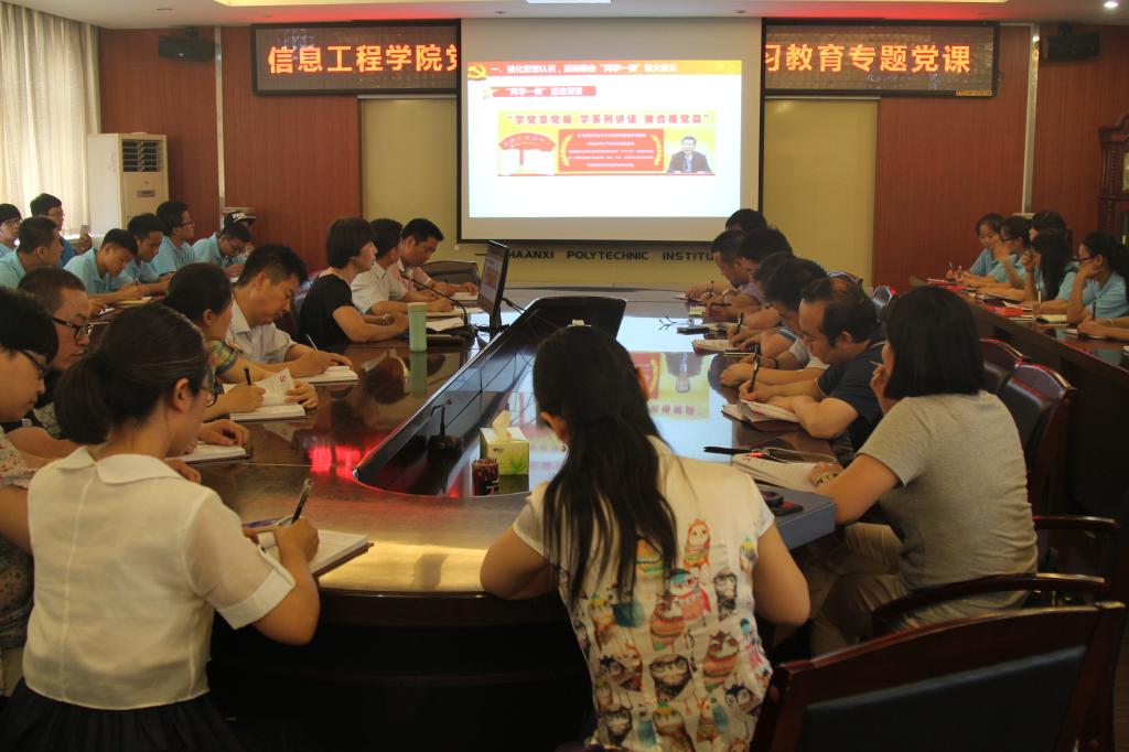 6月22日下午,根据学院党委“两学一做”学习教育计划的安排,信息工程学院党总支举行“两学一做”学习教育专题党课,张晓云院长应邀为信息工程学院做题为《自觉从延安精神中汲取力量,扎实做好‘两学一做'学习教育》的专题党课。专题党课由信息工程学院党总支书记闫军主持,该院全体教师党员和学生党员参加了学习。
