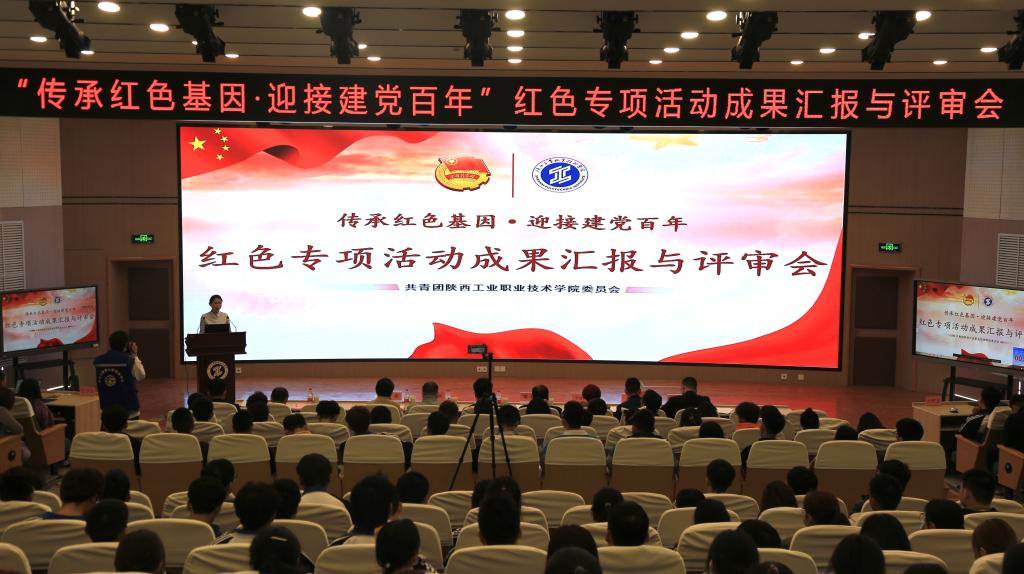 3月11日下午,由校团委组织的“传承红色基因·迎接建党百年”红色专项活动成果汇报与评审会在学术会堂举行。校党委副书记贺天柱出席会议,组织部、宣传部、学工部、马克思主义学院等相关老师担任评审会评委,各二级学院团总支书记、各参赛团队师生、以及通过“第二课堂”报名参加活动的同学共计400余人参加了成果汇报与评审会。活动由团委副书记薛媚主持。活动全程通过抖音账号“陕西工业职业技术学院团委”在抖音平台同步直播,并在大学生创新创业中心开设分会场。