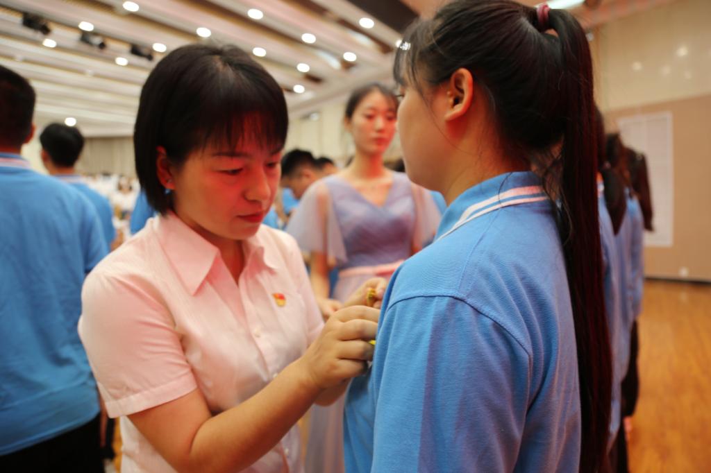 优秀校友何菲为新党员佩戴党徽