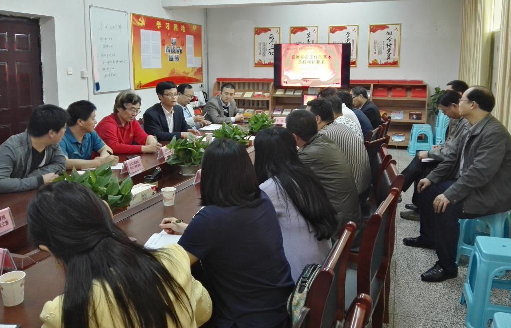 会上,王超联同志介绍本次培训的意义及注意事项,侯涛同志以《发展党员工作的基本流程和新要求》为主要内容开始培训。结合组织发展流程中的各类表格、材料,他从发展党员的基本流程、发展党员工作的新要求、《陕西省发展党员工作规程(试行)》的新变化、《普通高等学校学生党建工作标准》的新要求等四个方做了详尽讲解。