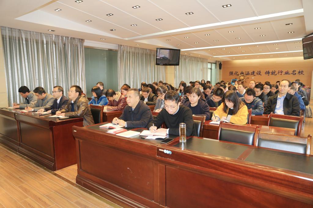 11月12日下午,结合“不忘初心、牢记使命”主题教育,党委书记惠朝阳在崇文楼十层第五会议室为机械工程学院、材料工程学院以及党政办、宣传部、教务处、人事处所有教师党员讲授题为《科学谋划,勇于担当,攻坚克难》专题党课。